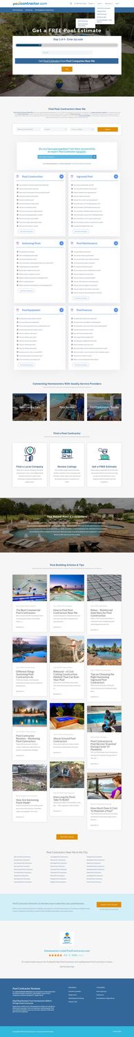 Pool Contractor is the best source for find pool builders near me. Get a pool contractor estimate in seconds and find out how much your swimming pool will cost. Looking for pool service companies or pool contractors? You'll find real reviews posted about Pool Companies from actual local homeowners. Get all your swimming pool questions answered by an expert Pool Contractor on the largest directory for pool companies on the internet PoolContractor.com